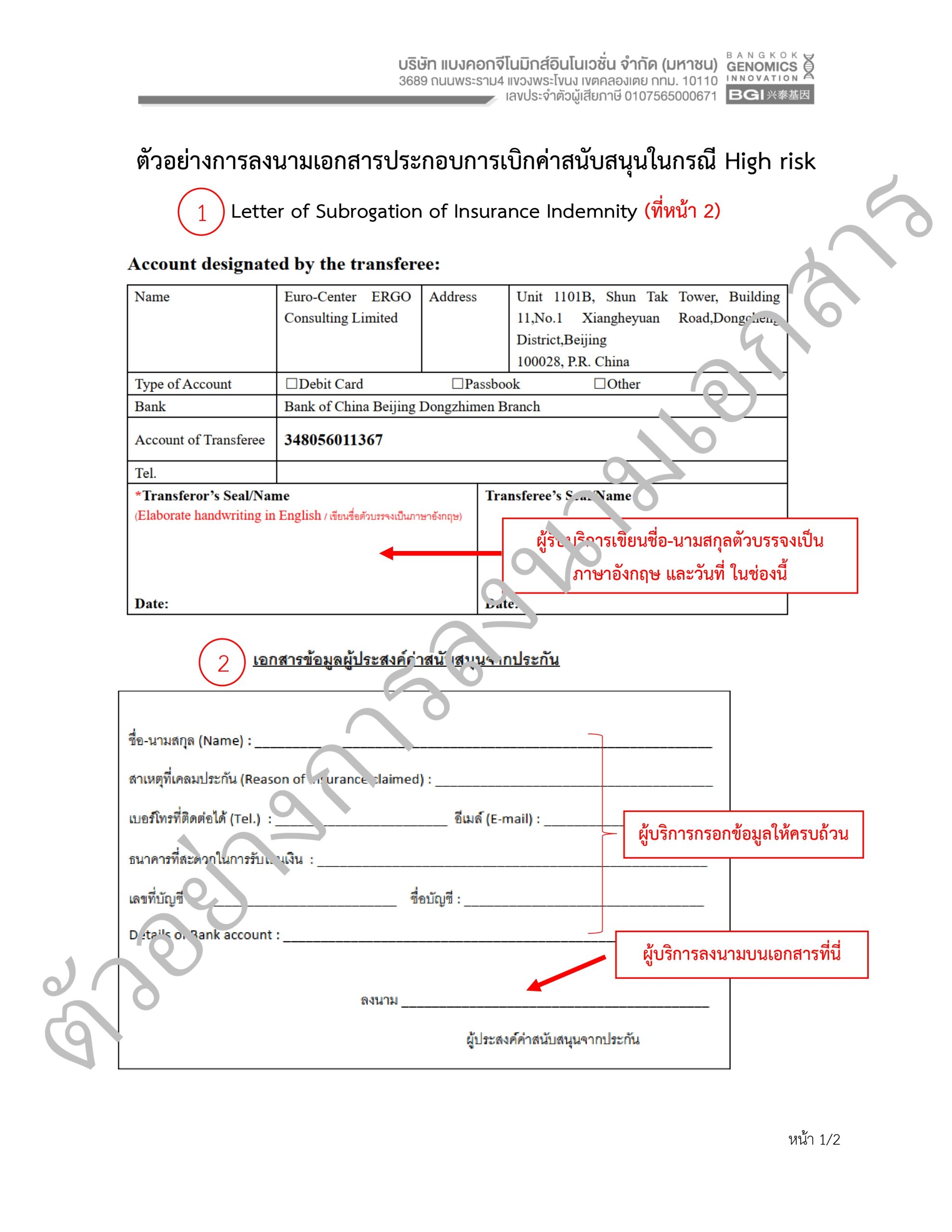- a. Letter of Subrogation of Insurance Indemnity พร้อมเขียนชื่อตัวบรรจงเป็นภาษาอังกฤษ