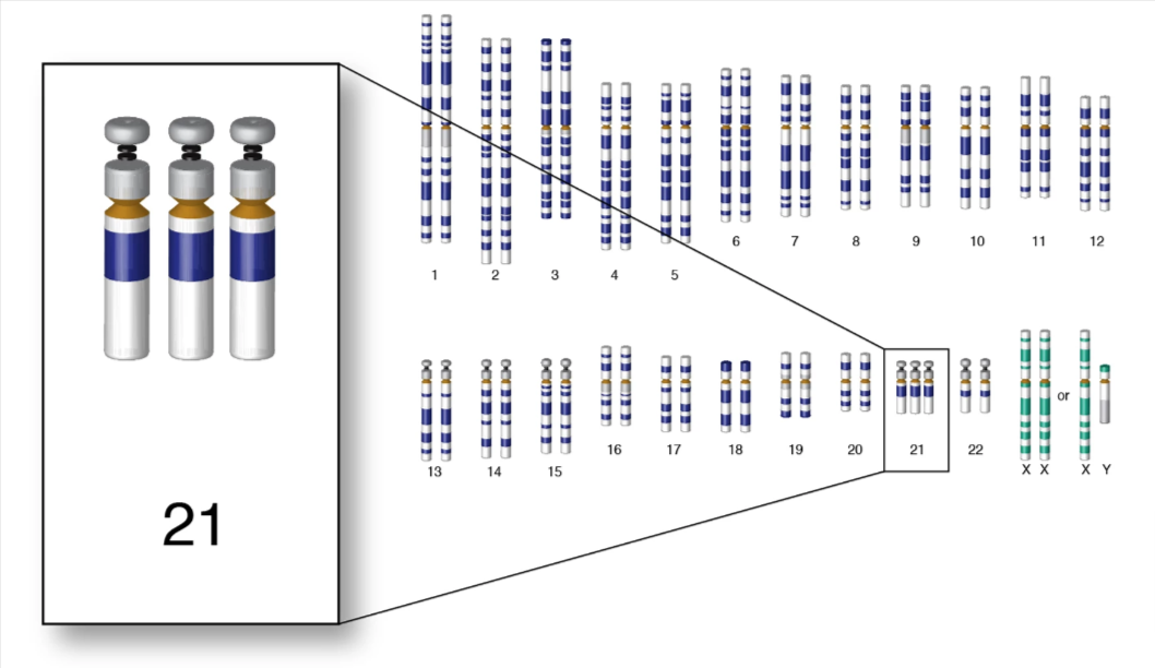 กลุ่มอาการดาวน์ซินโดรม เป็นโรคที่เกี่ยวข้องกับพันธุกรรมที่พบได้บ่อย โดยจะมีโครโมโซมคู่ที่ 21 เกินมา 1 แท่ง (รวมเป็น 3 แท่ง) จากความผิดปกตินี้จะทำให้เด็กที่เกิดมามีความผิดปกติในการพัฒนาร่างกายและสติปัญญา และเป็นสาเหตุที่เกี่ยวข้องกับโครโมโซมที่มีผลต่อการเรียนรู้มากที่สุดในโลก