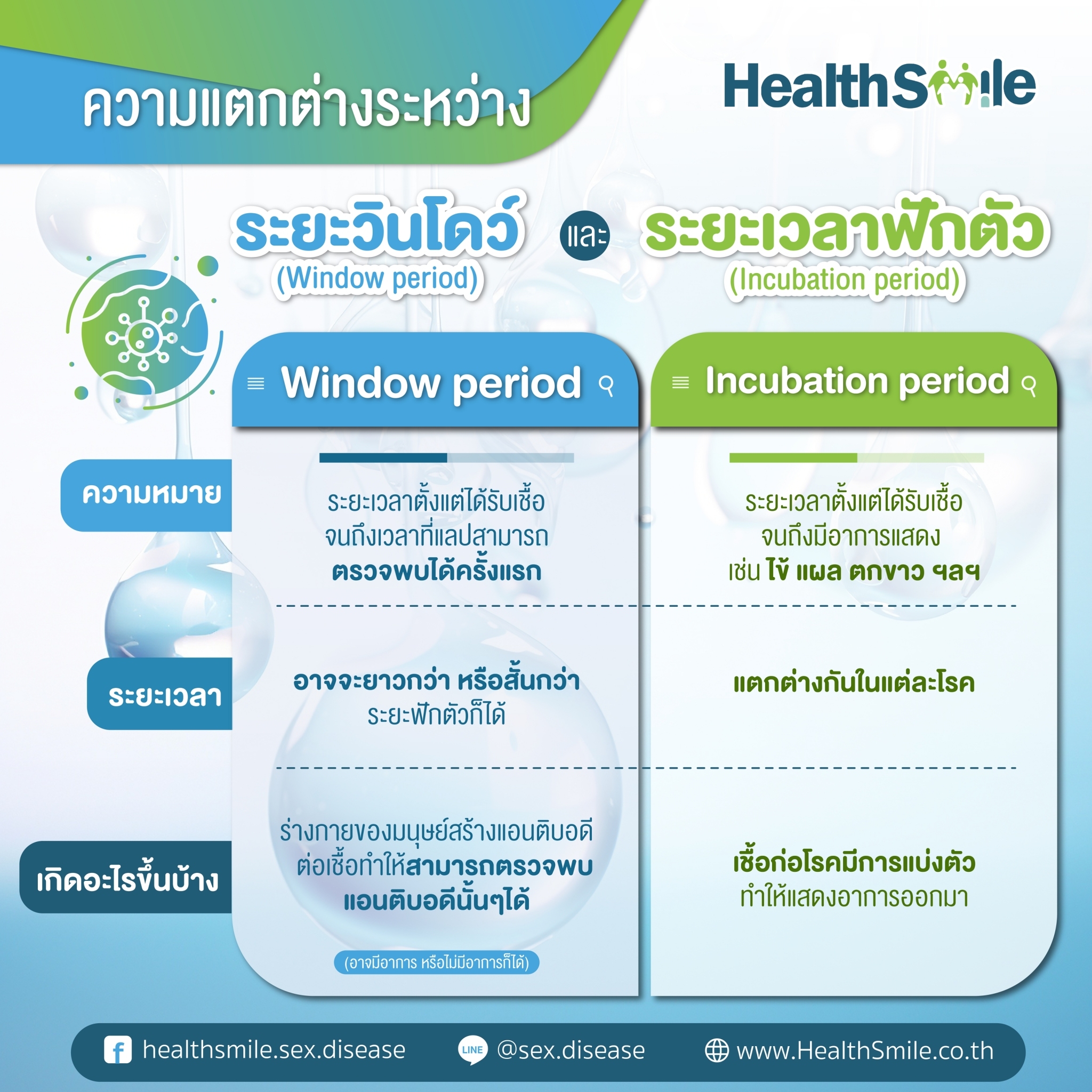 ระยะเวลาฟักตัว (Incubation period) และระยะเวลาตรวจไม่พบเชื้อ (Window period) ของโรคติดเชื้อทางเพศต่างๆ